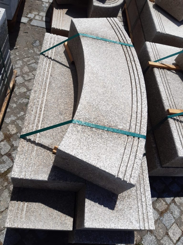 Bancos em Granito Cinza Alpendorada Acabamento Granalhado
