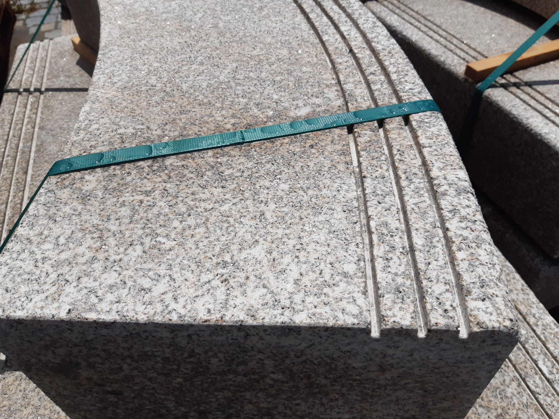 Degraus em Raio com 3 Rasgos Antiderrapante em Granito Amarelo